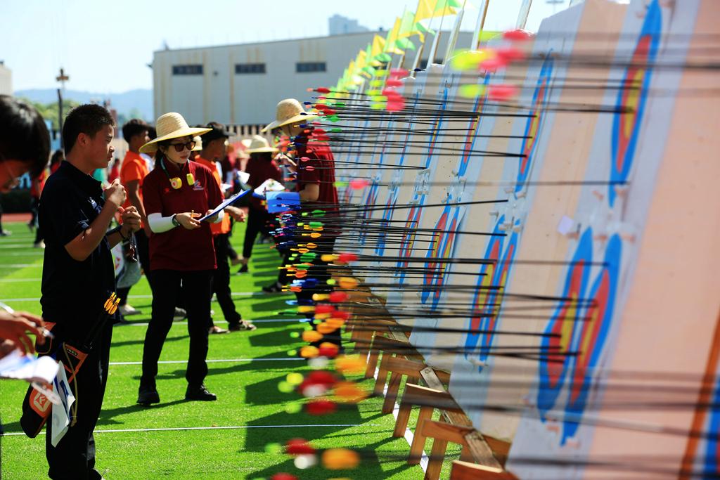 赛场上,选手们以最佳的状态投入比赛,站位、搭箭、开弓、瞄准……整套射箭动作干脆利落、一气呵成,充分展现了运动员们精湛的技艺和积极昂扬的精神风貌。