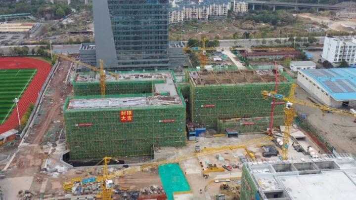 在华东师范大学附属三明中学建设项目(高中部)的施工现场,工人奋战在各自岗位上,紧张有序地推进项目建设。项目争取在8月全面完工,9月交付校方投入使用。