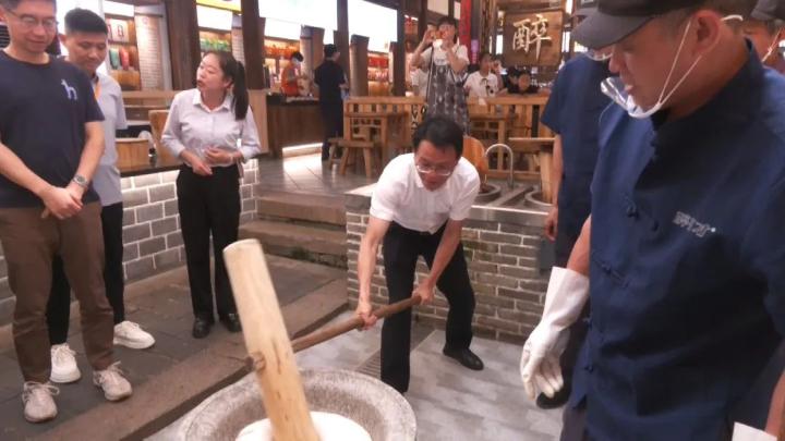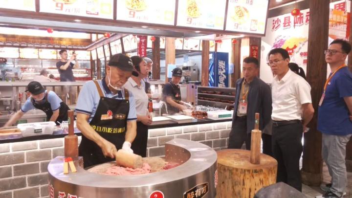 考察团来到东门古街,在醉有才小吃大食堂体验了打白粿、包白粿等一系列制作过程,并品尝了白粿、扁肉等特色小吃,近距离体验“舌尖非遗”;在非遗展示馆观赏了龙舟、木雕等特色非遗技艺,感受沙县区深厚的文化底蕴。