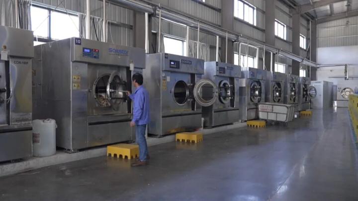 走进位于大洛镇的杰松洗涤有限公司,几台大型设备正全速运转,工人们在各自岗位上忙碌着,对清洗完毕的布草进行整理、搬运。