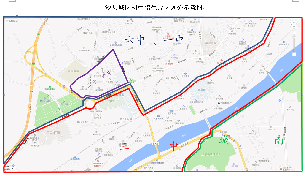 3.沙县城区中学招生片区划分示意图