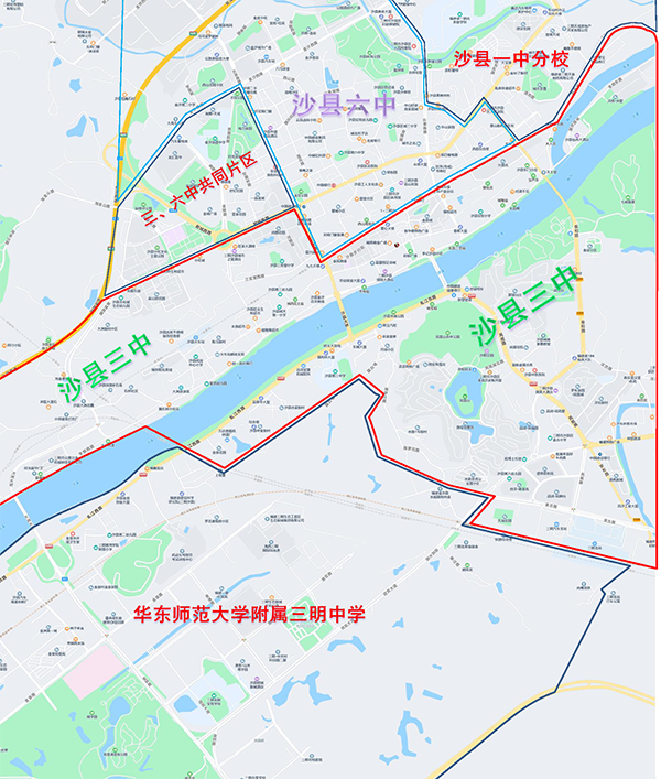 ④与沙县三中共同片区:采石场以东,长富南路以西,金沙西路延伸至长深高速公路以南,新城西路至采石场以北等村(居)委会、社区的小学毕业生。
