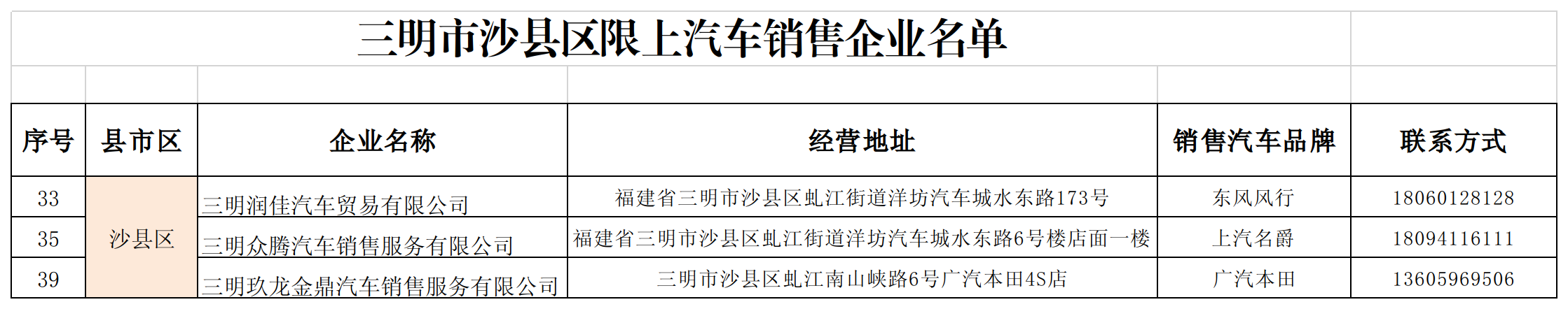 7.本次汽车消费补贴活动仅限于沙县区内依法注册登记并在商务部汽车流通管理信息系统备案且纳入国家限额以上统计调查的正常经营的汽车销售企业。