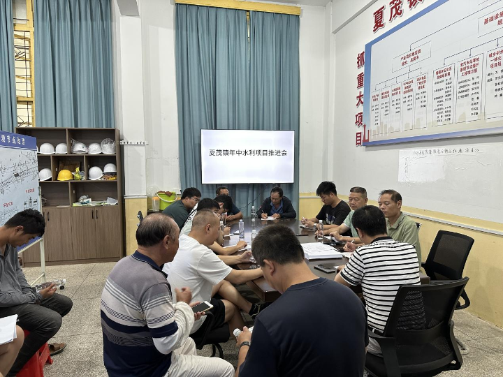 7月11日上午,夏茂镇组织召开水利在建项目推进会,项目施工方、监理和设计单位等人员参加。