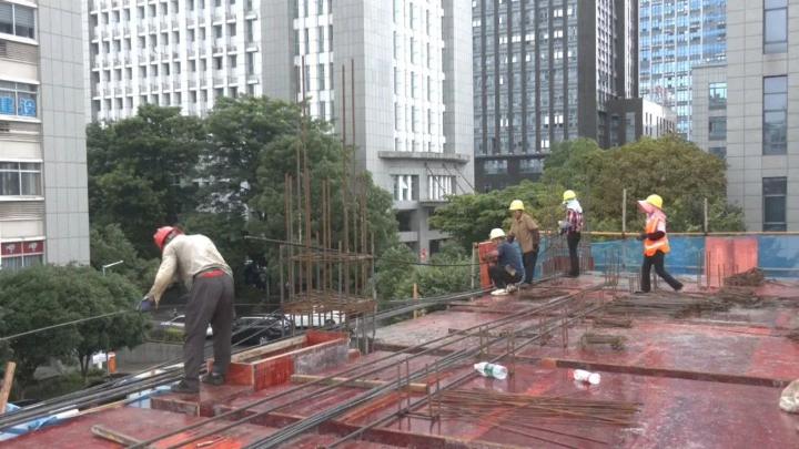 走进项目施工现场可以看到,近50名工人各司其职,正在进行一层框架柱的混凝土浇筑、二层板钢筋绑扎工作,现场一派热火朝天的施工景象。目前,项目主体建筑的地下室部分已基本完工。