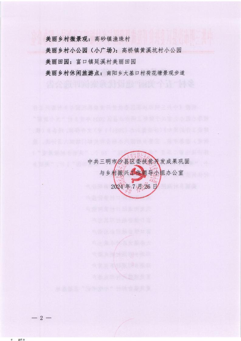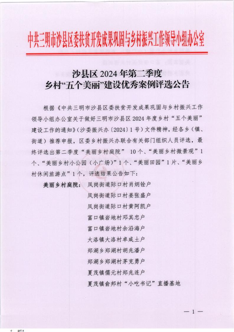沙县区2024年第二季度乡村“五个美丽”建设优秀案例评选公告