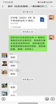 风险隐患摸排精准。镇村两级干部坚守岗位,包村(社区)领导、干部下沉到村,对辖区内12个水电站、3个水库、3个山塘、低洼易涝区、在建工程、地质灾害隐患点等进行全面排查,并对相关人员、相关企业进行安全提醒,督促其加强防台风等安全防御工作,确保安全。