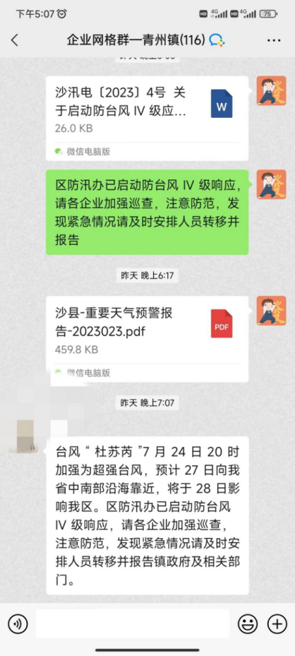 为防范今年第五号台风“杜苏芮”,青州镇迅速行动,全力以赴做好各项防御工作,把防御台风工作落实落细,切实保障人民群众生命财产安全。
