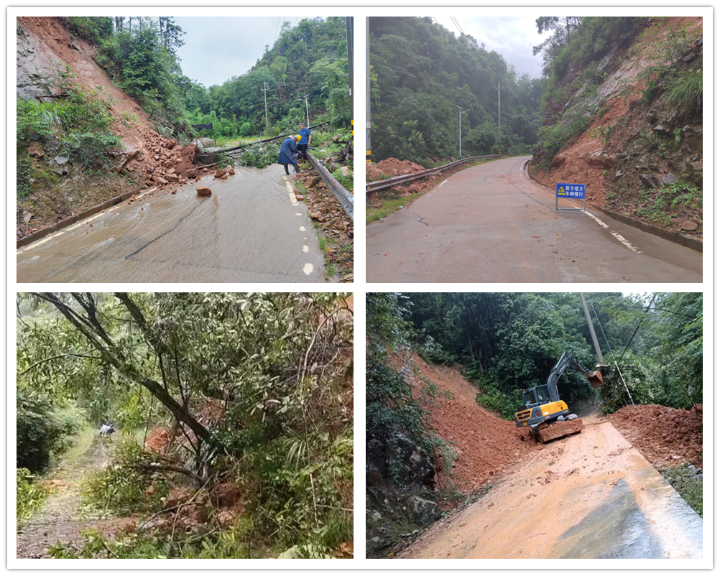 针对存在道路塌方等险情,各村挂包领导、村两委第一时间紧急调集机械车辆和抢修人员赶赴塌方路段,全面清理路面杂物,确保道路畅通。