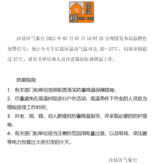 高温橙色预警信息(2021年7月7日10时25分发布)