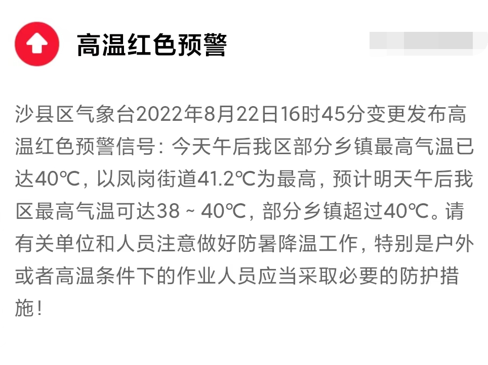 高温红色预警信息(2022年8月22日16时45分变更发布)