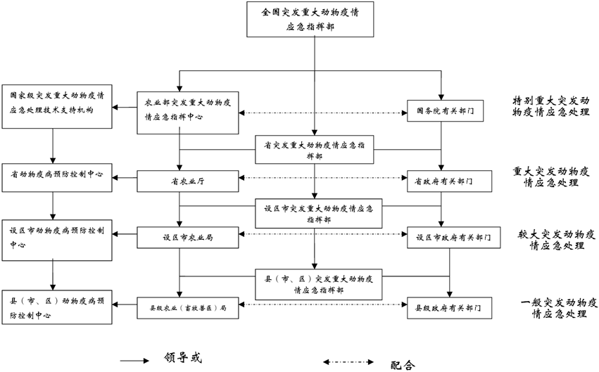 重大动物疫情应急处理工作按照属地管理的原则,实行政府统一领导、部门分工负责,逐级建立责任制。