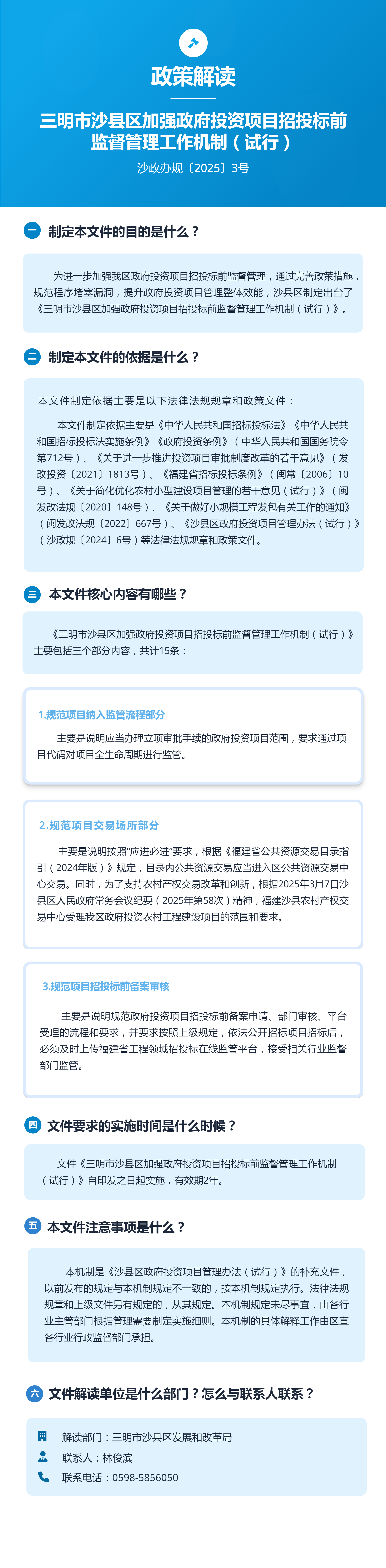 图解:三明市沙县区加强政府投资项目招投标前监督管理工作机制(试行)