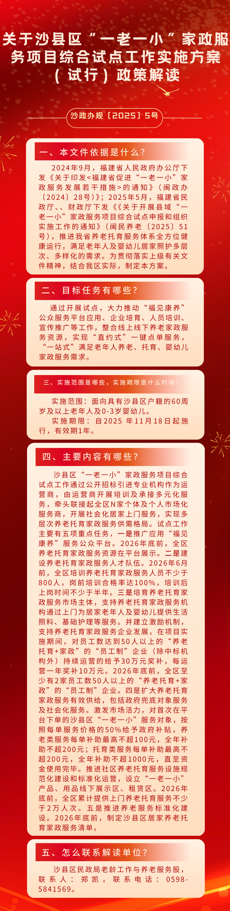 图解:沙县区“一老一小”家政服务项目综合试点工作实施方案(试行)
